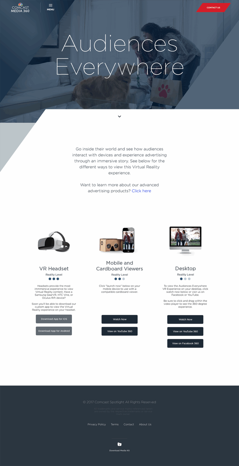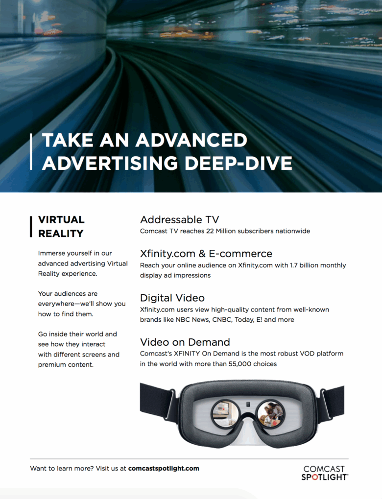 Go inside their world and discover how Comcast’s advertising audiences consume media. Visit ComcastMedia360.com/vr to see how you can view this project in VR.
